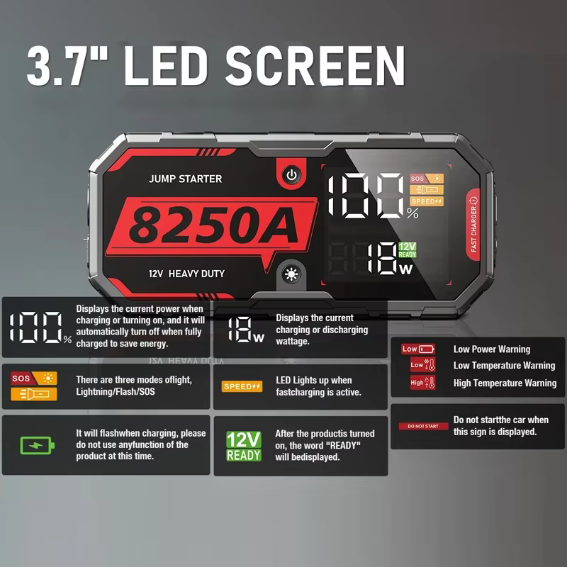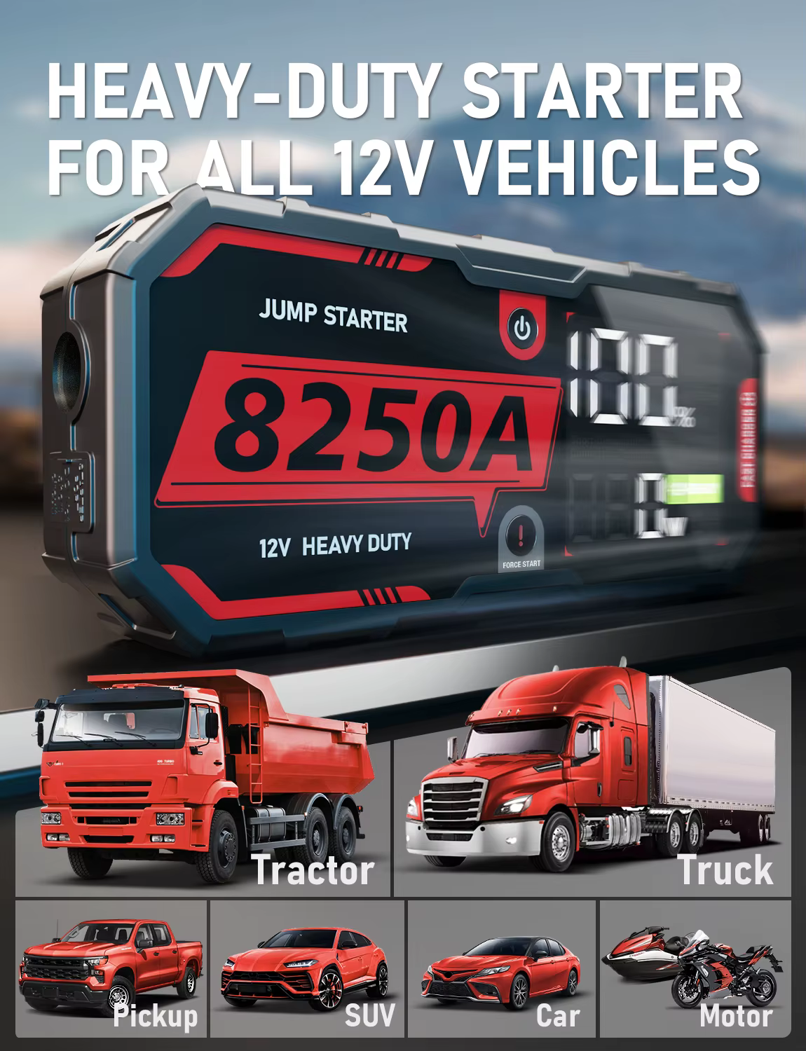 This car jump starter helps you start your vehicle quickly in emergencies. It features a powerful lithium battery and smart safety protection. Therefore, you can get back on the road without needing another vehicle.
